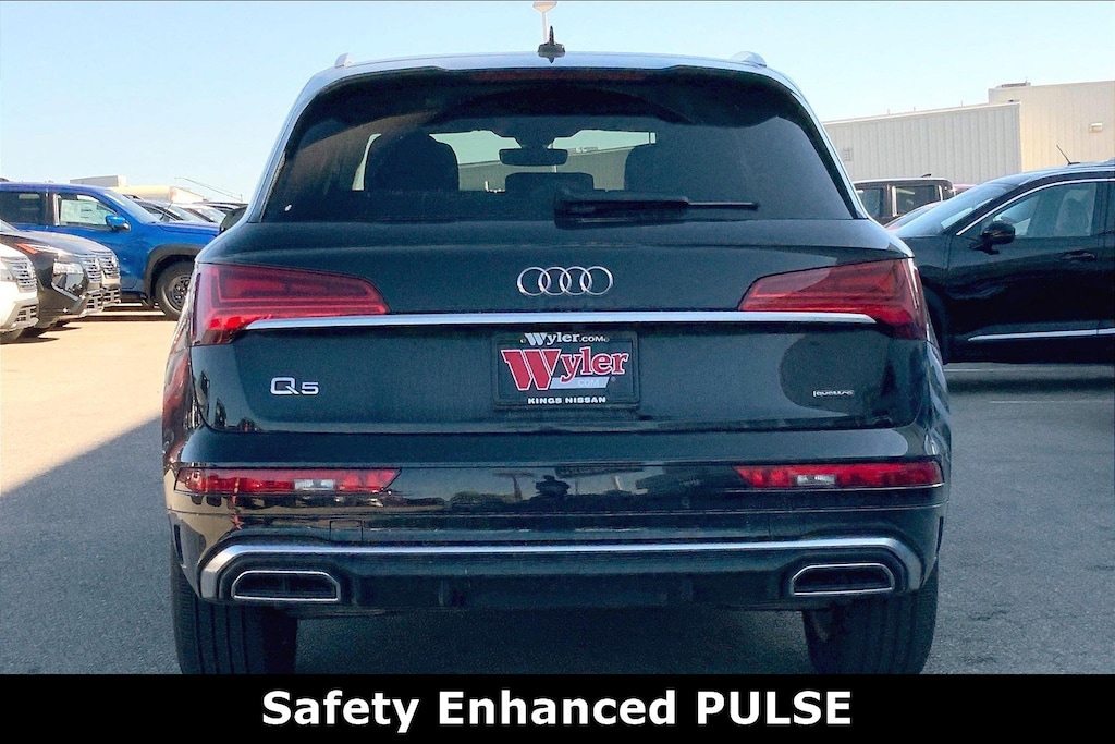 Jeff Wyler Kings Nissan is pleased to offer this terrific 2024 Audi Q5 45 S line Premium in Black. Well equipped with: Leather, 10 Speakers, 4-Wheel Disc Brakes, 5.302 Axle Ratio, ABS brakes, Air Conditioning, Alloy wheels, AM/FM radio, Auto High-beam Headlights, Auto-dimming Rear-View mirror, Automatic temperature control, Brake assist, Bumpers: body-color, Compass, Delay-off headlights, Driver door bin, Driver vanity mirror, Dual front impact airbags, Dual front side impact airbags, Electronic Stability Control, Emergency communication system: Audi connect CARE, Exterior Parking Camera Rear, Four wheel independent suspension, Front anti-roll bar, Front Bucket Seats, Front Center Armrest, Front dual zone A/C, Front fog lights, Front reading lights, Garage door transmitter: HomeLink, Genuine wood console insert, Genuine wood dashboard insert, Genuine wood door panel insert, Heated 8-Way Power Front Bucket Seats, Heated door mirrors, Heated front seats, Heated steering wheel, Illuminated entry, Leather Seating Surfaces, Leather Shift Knob, Leather steering wheel, Low tire pressure warning, Occupant sensing airbag, Outside temperature display, Overhead airbag, Overhead console, Panic alarm, Passenger door bin, Passenger vanity mirror, Power door mirrors, Power driver seat, Power Liftgate, Power passenger seat, Power steering, Power windows, Radio data system, Radio: Audi Sound System, Rain sensing wipers, Rear air conditioning, Rear anti-roll bar, Rear fog lights, Rear reading lights, Rear seat center armrest, Rear window defroster, Rear window wiper, Remote keyless entry, Roof rack, Security system, Speed control, Speed-sensing steering, Speed-Sensitive Wipers, Split folding rear seat, Spoiler, Steering wheel mounted audio controls, Tachometer, Telescoping steering wheel, Tilt steering wheel, Traction control, Trip computer, Turn signal indicator mirrors, Variably intermittent wipers, and Wheels: 18" 5-Arm-Turbine Design.Ask about available certifications.