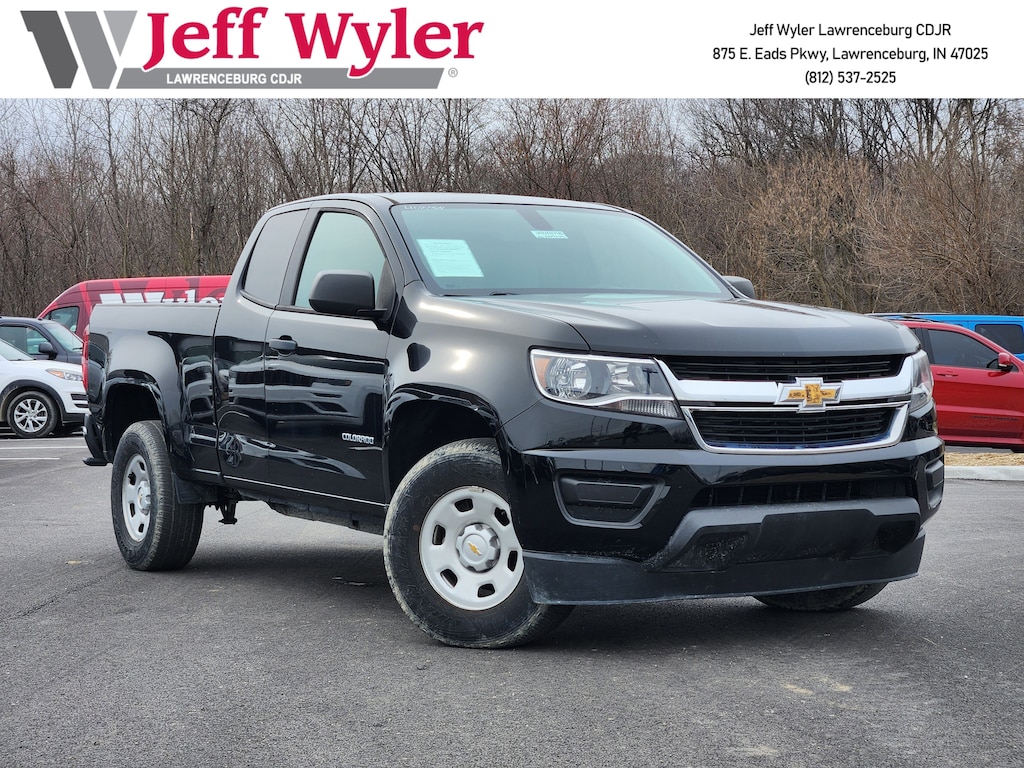 Jeff Wyler Chrysler Dodge Jeep of Lawrenceburg is honored to offer this gorgeous-looking 2020 Chevrolet Colorado in Black. Preferred Equipment Group 2SA, 4-Wheel Disc Brakes, 4.10 Rear Axle Ratio, 6 Speakers, 6-Speaker Audio System Feature, ABS brakes, Air Conditioning, AM/FM radio, Apple CarPlay/Android Auto, Bumpers: body-color, Delay-off headlights, Driver 4-Way Power Seat Adjuster, Driver door bin, Dual front impact airbags, Dual front side impact airbags, Electronic Stability Control, Exterior Parking Camera Rear, Front anti-roll bar, Front Bucket Seats, Front Center Armrest, Front License Plate Kit, Front wheel independent suspension, Fully automatic headlights, Low tire pressure warning, Occupant sensing airbag, Overhead airbag, Passenger door bin, Passenger vanity mirror, Power driver seat, Power steering, Power windows, Premium audio system: Chevrolet Infotainment 3, Radio data system, Radio: Chevrolet Infotainment 3 System, Rear step bumper, Speed-sensing steering, Tachometer, Tilt steering wheel, Traction control, Trip computer, Variably intermittent wipers, Vinyl Seat Trim, and Wheels: 16" x 7" Ultra Silver Metallic Steel Our PRE-OWNED vehicles are put through a rigorous 167- POINT QUALITY ASSURANCE INSPECTION along with an average amount of over $1,400.00 SPENT to recondition each vehicle so we can be sure to deliver you the highest quality vehicle like you deserve! ***ONLINE PRICE DOES NOT INCLUDE WYLER FAMILY FIRST PACKAGE*** Stop by 4136 Shelbyville Road to see for yourself, or give us a call @ 502-897-3151 to schedule your test drive! Ask about available certifications.