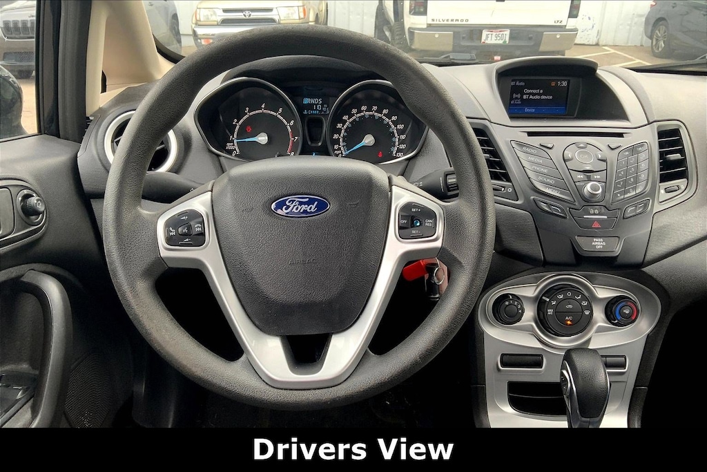Jeff Wyler Kings Nissan is pumped up to offer this great-looking 2018 Ford Fiesta SE in Shadow Black. Well equipped with: Equipment Group 200A, 6 Speakers, ABS brakes, Air Conditioning, Alloy wheels, AM/FM radio, Brake assist, Bumpers: body-color, CD player, Compass, Delay-off headlights, Driver door bin, Driver vanity mirror, Dual front impact airbags, Dual front side impact airbags, Electronic Stability Control, Emergency communication system: 911 Assist, Exterior Parking Camera Rear, Front anti-roll bar, Front Bucket Seats, Front Center Armrest, Front reading lights, Front wheel independent suspension, Fully automatic headlights, Illuminated entry, Knee airbag, Low tire pressure warning, Occupant sensing airbag, Overhead airbag, Overhead console, Passenger door bin, Passenger vanity mirror, Power door mirrors, Power steering, Power windows, Radio data system, Radio: AM/FM Stereo/CD Player/MP3 Capable, Rear reading lights, Rear window defroster, Remote keyless entry, Security system, Speed control, Speed-sensing steering, Split folding rear seat, Steering wheel mounted audio controls, SYNC Communications & Entertainment System, Tachometer, Telescoping steering wheel, Tilt steering wheel, Traction control, Trip computer, Unique Cloth Front Bucket Seats, Variably intermittent wipers, and Wheels: 15" Sparkle Silver Painted Aluminum.Ask about available certifications.