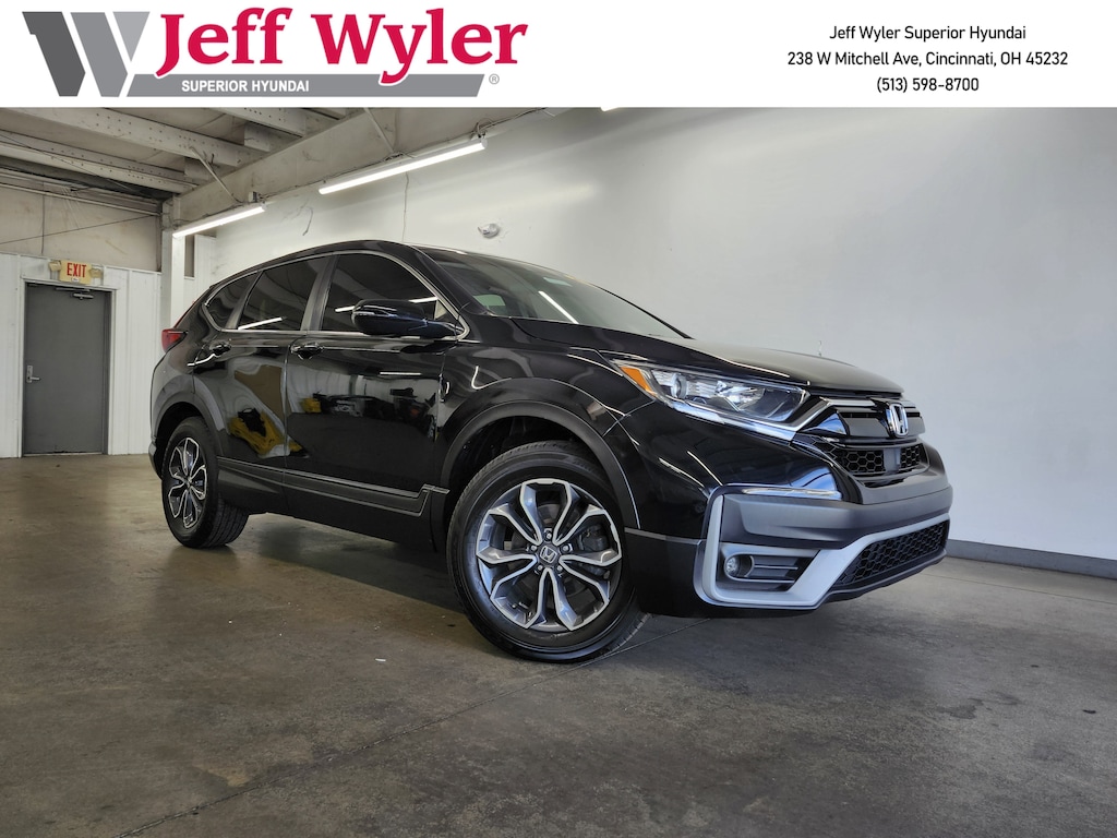 Jeff Wyler Superior Hyundai is proud to offer this terrific 2021 Honda CR-V EX in Black. Well equipped with: AWD, 18" Alloy Wheels, 4-Wheel Disc Brakes, 5.64 Axle Ratio, 6 Speakers, ABS brakes, Adaptive Cruise Control: Adaptive Cruise Control (ACC) with Low-Speed Follow, Air Conditioning, Alloy wheels, AM/FM radio: SiriusXM, Apple CarPlay/Android Auto, Auto High-beam Headlights, Automatic temperature control, Blind Spot Information (BSI) System warning, Brake assist, Bumpers: body-color, Cloth Seat Trim, Compass, Delay-off headlights, Driver door bin, Driver vanity mirror, Dual front impact airbags, Dual front side impact airbags, Electronic Stability Control, Exterior Parking Camera Rear, Forward collision: Collision Mitigation Braking System (CMBS) + FCW mitigation, Four wheel independent suspension, Front anti-roll bar, Front Bucket Seats, Front Center Armrest, Front dual zone A/C, Front fog lights, Front reading lights, Heated door mirrors, Heated Front Bucket Seats, Heated front seats, Illuminated entry, Low tire pressure warning, Occupant sensing airbag, Outside temperature display, Overhead airbag, Overhead console, Panic alarm, Passenger door bin, Passenger vanity mirror, Power door mirrors, Power driver seat, Power moonroof, Power steering, Power windows, Radio data system, Radio: 180-Watt AM/FM/HD/SiriusXM Audio System, Rear anti-roll bar, Rear seat center armrest, Rear window defroster, Rear window wiper, Remote keyless entry, Security system, Speed control, Speed-sensing steering, Speed-Sensitive Wipers, Split folding rear seat, Spoiler, Steering wheel mounted audio controls, Tachometer, Telescoping steering wheel, Tilt steering wheel, Traction control, Trip computer, Turn signal indicator mirrors, and Variably intermittent wipers. CARFAX One-Owner. This sales price excludes tax, title, and dealer fees. While every reasonable effort is made to ensure the accuracy of this information, we are not responsible for any errors or omissions contained on these pages. Used vehicles 10 years of age or newer with less than 100,000 miles are eligible for the Wyler Assurance Program, but eligible vehicles must pass our reconditioning process and multi-point inspection. Provided the vehicle passes inspection, vehicles will be eligible for the 6 month/6,000 mile limited warranty. The 6 month/6,000 mile limited warranty is NOT available on AS-IS vehicles, wholesale vehicles, lease buyback/pass-thru vehicles or un-inspected vehicles. Note that this program can also apply to vehicles where the remaining factory coverage is less than 6 months or 6,000 miles. Please check the Federal Trade Commission (FTC) Buyers guide on the vehicle for full details as to whether or not warranty coverage may apply. Contact Dealer for additional details. The Wyler Assurance 6 month/6,000 Mile limited warranty ends 6 months from the date of the Retail Purchase Agreement (BUYERS ORDER) or when the vehicle's odometer registers 6,000 additional miles to the mileage listed on the BUYERS ORDER, whichever comes first.Your Deductible - The warranty holder on your contract pays the first $100 of each covered repair.