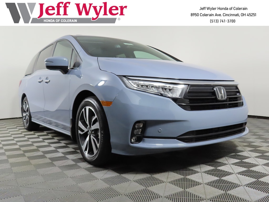 Jeff Wyler Honda of Colerain is very proud to offer this good-looking 2023 Honda Odyssey Touring in Sonic Gray Pearl. Well equipped with: 3.61 Axle Ratio, 3rd row seats: split-bench, 4-Wheel Disc Brakes, 7 Speakers, A/V remote: CabinControl, ABS brakes, Adaptive Cruise Control: Adaptive Cruise Control (ACC) with Low-Speed Follow, Air Conditioning, Alloy wheels, AM/FM radio: SiriusXM, Anti-whiplash front head restraints, Apple CarPlay/Android Auto, Auto High-beam Headlights, Auto-dimming Rear-View mirror, Automatic temperature control, Blind Spot Information (BSI) System warning, Brake assist, Bumpers: body-color, CD player, Compass, Delay-off headlights, Driver door bin, Driver vanity mirror, Driver's Seat Mounted Armrest, Dual front impact airbags, Dual front side impact airbags, DVD-Audio, Electronic Stability Control, Emergency communication system: HondaLink, Exterior Parking Camera Rear, Four wheel independent suspension, Front anti-roll bar, Front Bucket Seats, Front dual zone A/C, Front fog lights, Front reading lights, Fully automatic headlights, Garage door transmitter: HomeLink, Headphones, Heated door mirrors, Heated Front Bucket Seats, Heated front seats, Illuminated entry, Knee airbag, Lane departure: Lane Keeping Assist System (LKAS) active, Leather Seat Trim, Leather steering wheel, Low tire pressure warning, Memory seat, Navigation system: Honda Satellite-Linked Navigation System, Occupant sensing airbag, Outside temperature display, Overhead airbag, Overhead console, Panic alarm, Passenger door bin, Passenger seat mounted armrest, Passenger vanity mirror, Power door mirrors, Power driver seat, Power Liftgate, Power moonroof, Power passenger seat, Power steering, Power windows, Radio data system, Radio: 160-Watt AM/FM/HD/SiriusXM Audio System, Rear air conditioning, Rear anti-roll bar, Rear audio controls, Rear reading lights, Rear seat center armrest, Rear window defroster, Rear window wiper, Reclining 3rd row seat, Remote keyless entry, Security system, Speed control, Speed-sensing steering, Speed-Sensitive Wipers, Split folding rear seat, Spoiler, Steering wheel mounted audio controls, Tachometer, Telescoping steering wheel, Tilt steering wheel, Traction control, Trip computer, Turn signal indicator mirrors, Variably intermittent wipers, and Wheels: 19" Machine-Finished Alloy.