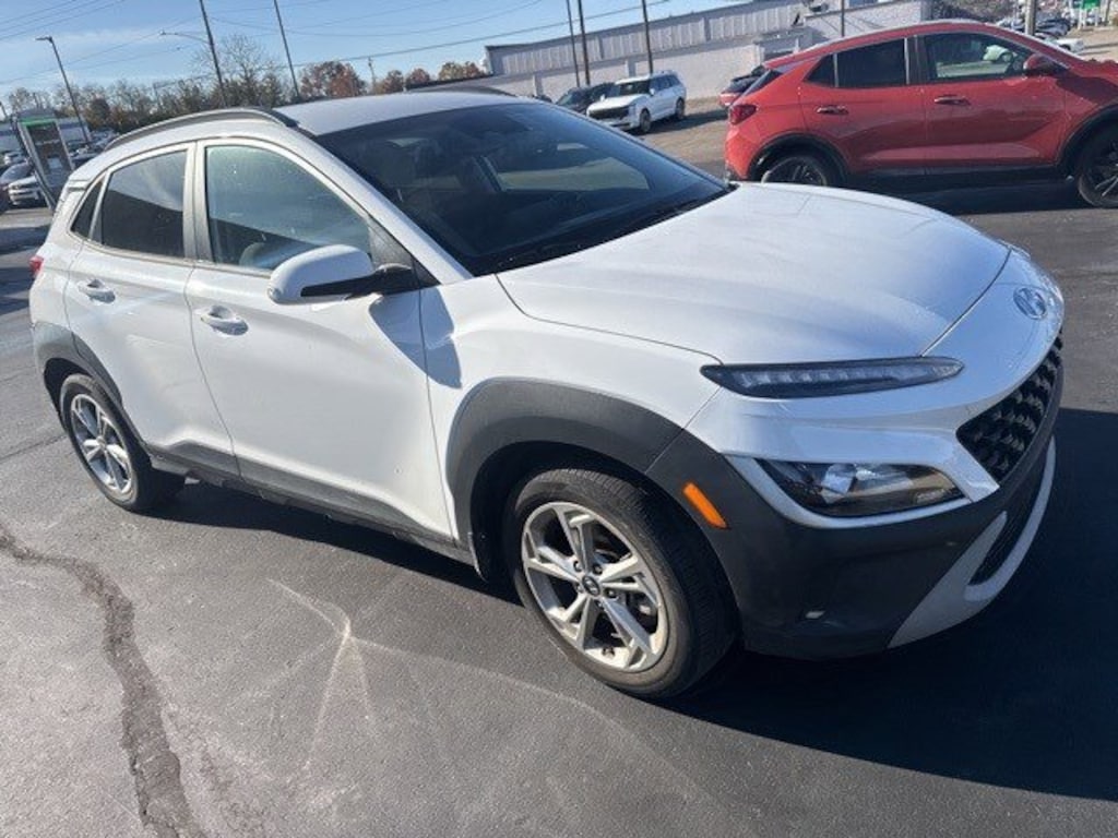 Clean CARFAX. Jeff Wyler Hyundai of Fairfield is pleased to offer this charming 2023 Hyundai Kona SEL in Lunar White. Well equipped with: Cargo Package (Cargo Net and Cargo Tray), Option Group 01, Android Auto, Apple CarPlay, CALL NOW FOR YOUR VIP APPOINTMENT 513-870-9800, FULLY SERVICED w/RECORDS, GUARANTEED FINANCING!! NO MATTER YOUR SITUATION WE CAN GET AN APPROVAL!!, THE #1 Volume dealer in the region! Come see why for yourself Today!!, WE PAY MORE FOR YOUR TRADE!!, 17" x 7.0J Alloy Wheels, 4-Wheel Disc Brakes, 5.715 Axle Ratio, 6 Speakers, ABS brakes, Air Conditioning, Alloy wheels, AM/FM radio: SiriusXM, Apple CarPlay & Android Auto, Brake assist, Bumpers: body-color, Carpeted Floor Mats, Cloth Seat Trim, Delay-off headlights, Driver door bin, Driver vanity mirror, Dual front impact airbags, Dual front side impact airbags, Electronic Stability Control, Emergency communication system: Blue Link Connected Car Service (3-year complimentary subscription), Exterior Parking Camera Rear, Four wheel independent suspension, Front & Rear Mudguards, Front anti-roll bar, Front Bucket Seats, Front Center Armrest, Front reading lights, Fully automatic headlights, Heated door mirrors, Illuminated entry, Low tire pressure warning, Occupant sensing airbag, Outside temperature display, Overhead airbag, Overhead console, Panic alarm, Passenger door bin, Passenger vanity mirror, Power door mirrors, Power driver seat, Power steering, Power windows, Radio: AM/FM/HD/SiriusXM Audio System, Rear anti-roll bar, Rear seat center armrest, Rear window defroster, Rear window wiper, Remote keyless entry, Security system, Speed control, Speed-sensing steering, Split folding rear seat, Spoiler, Steering wheel mounted audio controls, Tachometer, Telescoping steering wheel, Tilt steering wheel, Traction control, Trip computer, Turn signal indicator mirrors, and Variably intermittent wipers. TO CHECK ON THE AVAILABILITY OF THIS VEHICLE REACH OUT TO ONE OF OUR TEAM MEMBERS!! ALSO SHOP ONLINE AT https://www.jeffwylerhyundaioffairfield.com/ Proudly Serving: Cincinnati, Dayton, Columbus, Louisville, Lexington, Indianapolis, Hamilton, Florence, Alexandria, Beavercreek, Springdale, West Chester, Monroe, Fairfield, Kenwood, Newport and all of greater Cincinnati Ohio, Indiana, and Northern Kentucky.