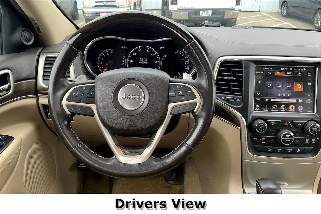 Jeff Wyler Kings Nissan is excited to offer this good-looking 2017 Jeep Grand Cherokee Overland in Ivory 3-Coat. Well equipped with: Quick Order Package 28P, 4WD, 10 Speakers, 3.09 Rear Axle Ratio, 3.45 Rear Axle Ratio, 4-Wheel Disc Brakes, ABS brakes, Air Conditioning, Alloy wheels, AM/FM radio: SiriusXM, Anti-whiplash front head restraints, Audio memory, Auto High-beam Headlights, Auto-dimming door mirrors, Auto-dimming Rear-View mirror, Auto-leveling suspension, Automatic temperature control, Brake assist, Bumpers: body-color, Compass, Delay-off headlights, Driver door bin, Driver vanity mirror, Dual front impact airbags, Dual front side impact airbags, Electronic Stability Control, Emergency communication system: Uconnect Access, Engine Oil Cooler, Four wheel independent suspension, Front anti-roll bar, Front Bucket Seats, Front Center Armrest w/Storage, Front dual zone A/C, Front fog lights, Front reading lights, Fully automatic headlights, Garage door transmitter, Genuine wood dashboard insert, Heated door mirrors, Heated front seats, Heated rear seats, Heated steering wheel, High intensity discharge headlights: Bi-Xenon, Illuminated entry, Instrument Cluster w/Off-Road Disp. Pages, Knee airbag, Leather Shift Knob, Leather steering wheel, Leather Trim Seats w/Edge Welting, Low tire pressure warning, Memory seat, Navigation System, Normal Duty Suspension, Occupant sensing airbag, Outside temperature display, Overhead airbag, Overhead console, Panic alarm, ParkView Rear Back-Up Camera, Passenger door bin, Passenger vanity mirror, Power door mirrors, Power driver seat, Power Liftgate, Power moonroof, Power passenger seat, Power steering, Power windows, Radio data system, Radio: Uconnect 3C Nav w/8.4" Display, Rain sensing wipers, Rear anti-roll bar, Rear reading lights, Rear seat center armrest, Rear window defroster, Rear window wiper, Remote keyless entry, Roof rack: rails only, Security system, Speed control, Speed-Sensitive Wipers, Split folding rear seat, Spoiler, Steering wheel mounted audio controls, Tachometer, Telescoping steering wheel, Tilt steering wheel, Traction control, Trip computer, Turn signal indicator mirrors, Variably intermittent wipers, Ventilated front seats, and Wheels: 20" x 8.0" Tech Gray Aluminum.Ask about available certifications.