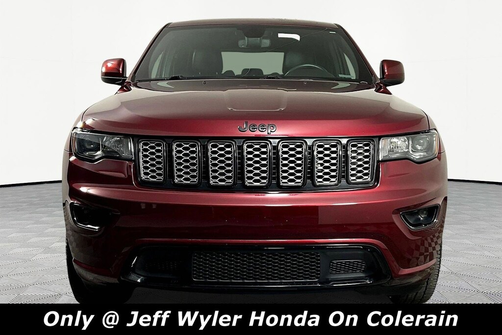 Jeff Wyler Honda of Colerain is excited to offer this beautiful-looking 2018 Jeep Grand Cherokee Altitude in Velvet Red Pearlcoat. Well equipped with: Altitude IV Package, Quick Order Package 2BZ Altitude (1-Year SiriusXM Guardian Trial, 1-Year SiriusXM Radio Service, 5-Year SiriusXM Traffic Service, 5-Year SiriusXM Travel Link Service, 8.4" Touchscreen Display, Altitude Grille, Apple CarPlay, Auto-Dimming Rear-View Mirror, Black Suede Seats w/Black Stitching, Body Color Claddings, Body Color Fascia, Body Color Shark Fin Antenna, Dark Day Light Opening Moldings, Dark Headlamp Bezel Finish, Dark Lens Taillamps, Delete Laredo Badge, For Details Visit DriveUconnect.com, Front Accent/Body Color Fascia, Gloss Black Rear Fascia Applique, Google Android Auto, GPS Antenna Input, GPS Navigation, HD Radio, Integrated Voice Command w/Bluetooth, Jeep Black Gloss Badging, Power 4-Way Driver Lumbar Adjust, Power 8-Way Driver/Manual Passenger Seat, Radio: Uconnect 4C Nav w/8.4" Display, Rear Accent/Body Color Fascia, Rear Fascia Black MIC Step Pad, Single Exhaust w/Bright Tip, SiriusXM Satellite Radio, SiriusXM Traffic Plus, SiriusXM Travel Link, Steering Wheel Mounted Audio Controls, USB Host Flip, and Wheels: 20" x 8.0" Gloss Black Aluminum), Security & Convenience Group (115V Auxiliary Power Outlet, Power Liftgate, Security Alarm, and Universal Garage Door Opener), 3.45 Rear Axle Ratio, 4-Wheel Disc Brakes, 6 Speakers, ABS brakes, Air Conditioning, Alloy wheels, AM/FM radio, Anti-whiplash front head restraints, Apple CarPlay/Android Auto, Automatic temperature control, Brake assist, Bumpers: body-color, Cargo Compartment Cover, Cloth Bucket Seats, Compass, Delay-off headlights, Driver door bin, Driver vanity mirror, Dual front impact airbags, Dual front side impact airbags, Electronic Stability Control, Four wheel independent suspension, Front anti-roll bar, Front Bucket Seats, Front Center Armrest w/Storage, Front dual zone A/C, Front fog lights, Front reading lights, Fully automatic headlights, Heated door mirrors, Illuminated entry, Knee airbag, Leather Shift Knob, Low tire pressure warning, Normal Duty Suspension, Occupant sensing airbag, Outside temperature display, Overhead airbag, Overhead console, Panic alarm, ParkView Rear Back-Up Camera, Passenger door bin, Passenger vanity mirror, Power door mirrors, Power steering, Power windows, Radio data system, Radio: Uconnect 4 w/7" Display, Rear anti-roll bar, Rear reading lights, Rear seat center armrest, Rear window defroster, Rear window wiper, Remote keyless entry, Speed control, Speed-Sensitive Wipers, Split folding rear seat, Spoiler, Steering wheel mounted audio controls, Tachometer, Telescoping steering wheel, Tilt steering wheel, Traction control, Trip computer, Variably intermittent wipers, and Wheels: 17" x 8.0" Silver AluminuM.