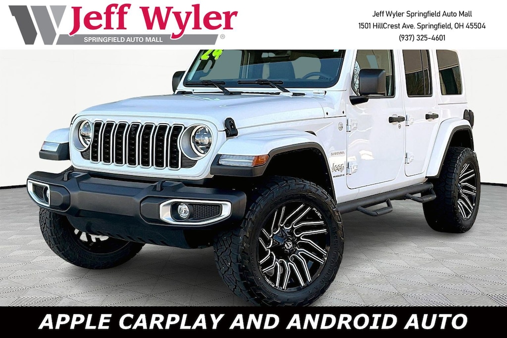 Jeff Wyler Springfield Auto Mall is pleased to offer this great 2024 Jeep Wrangler Sahara in Bright White Clearcoat. Well equipped with: Quick Order Package 22G Sahara, Technology Group (12.3" Touchscreen Display, 4G LTE Wi-Fi Hot Spot, Alpine Premium Audio System, Apple CarPlay, Auto-Dimming Rear-View Mirror, Connected Travel & Traffic Services, Connectivity - US/Canada, Disassociated Touchscreen Display, Google Android Auto, GPS Navigation, HD Radio, Integrated Center Stack Radio, Integrated Off-Road Camera, Integrated Voice Command w/Bluetooth, Radio: Uconnect 5 Nav w/12.3" Display, SiriusXM Radio Service, SiriusXM w/360L, and Universal Garage Door Opener), 110 MPH Vehicle Max Speed Calibration, 3.45 Overall Top Gear Ratio, 4-Wheel Disc Brakes, 8 Speakers, ABS brakes, Air Conditioning, Alloy wheels, AM/FM radio: SiriusXM, Apple CarPlay/Android Auto, Automatic temperature control, Aux Battery, Body Color 3-Piece Hard Top, Brake assist, Cloth Low-Back Bucket Seats, Compass, Delay-off headlights, Driver door bin, Driver vanity mirror, Dual front impact airbags, Dual front side impact airbags, Electronic Stability Control, Emergency communication system: Jeep Connect, Freedom Panel Storage Bag, Front anti-roll bar, Front Bucket Seats, Front Center Armrest w/Storage, Front dual zone A/C, Front fog lights, Front License Plate Bracket, Front reading lights, Fully automatic headlights, Heated door mirrors, Heated front seats, Heated steering wheel, Heavy Duty Suspension w/Gas Shocks, Illuminated entry, Integrated roll-over protection, Low tire pressure warning, MOPAR All-Weather Floor Mats, No Soft Top, Non-Lock Fuel Cap w/o Discriminator, Occupant sensing airbag, Outside temperature display, Overhead airbag, Panic alarm, ParkView Rear Back-Up Camera, Passenger door bin, Passenger vanity mirror, Power door mirrors, Power steering, Power windows, Radio data system, Radio: Uconnect 5 w/12.3" Display, Rear anti-roll bar, Rear reading lights, Rear Window Defroster, Rear Window Wiper/Washer, Remote keyless entry, Security system, Speed control, Split folding rear seat, Steering wheel mounted audio controls, Stop-Start Dual Battery System, Tachometer, Telescoping steering wheel, Tilt steering wheel, Traction control, Trip computer, Variably intermittent wipers, Voltmeter, and Wheels: 18" x 7.5" Machine/Painted Gray. Ask about available certifications. Used vehicles 10 years of age or newer with less than 100,000 miles are eligible for the Wyler Assurance Program, but eligible vehicles must pass our reconditioning process and multi-point inspection. Provided the vehicle passes inspection, vehicles will be eligible for the 6 month/6,000 mile limited warranty. The 6 month/6,000 mile limited warranty is NOT available on AS-IS vehicles, wholesale vehicles, lease buyback/pass-thru vehicles or un-inspected vehicles. Note that this program can also apply to vehicles where the remaining factory coverage is less than 6 months or 6,000 miles. Please check the Federal Trade Commission (FTC) Buyers guide on the vehicle for full details as to whether or not warranty coverage may apply. Contact Dealer for additional details. The Wyler Assurance 6 month/6,000 Mile limited warranty ends 6 months from the date of the Retail Purchase Agreement (BUYERS ORDER) or when the vehicle's odometer registers 6,000 additional miles to the mileage listed on the BUYERS ORDER, whichever comes first. Your Deductible - The warranty holder on your contract pays the first $100 of each covered repair.