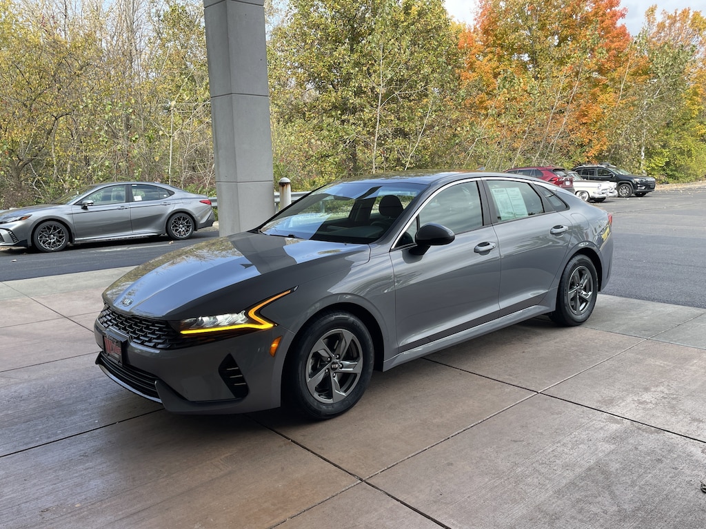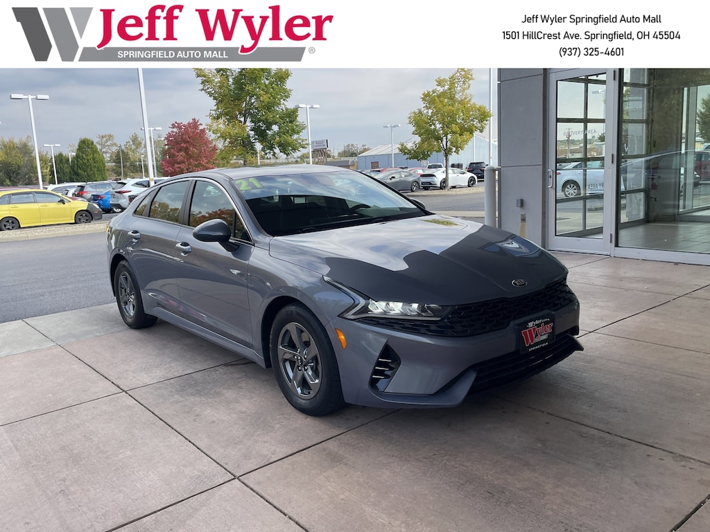 Jeff Wyler Springfield Auto Mall is pumped up to offer this beautiful 2021 Kia K5 LXS in Everlasting Silver. Well equipped with: 4-Wheel Disc Brakes, 6 Speakers, ABS brakes, Air Conditioning, Alloy wheels, AM/FM radio, Apple CarPlay & Android Auto, Auto High-beam Headlights, Automatic temperature control, Brake assist, Bumpers: body-color, Carpeted Floor Mats, Cloth Seat Trim, Delay-off headlights, Driver door bin, Driver vanity mirror, Dual front impact airbags, Dual front side impact airbags, Electronic Stability Control, Four wheel independent suspension, Front anti-roll bar, Front Bucket Seats, Front Center Armrest, Front dual zone A/C, Front reading lights, Fully automatic headlights, Heated door mirrors, Illuminated entry, Knee airbag, Low tire pressure warning, Occupant sensing airbag, Outside temperature display, Overhead airbag, Overhead console, Panic alarm, Passenger door bin, Passenger vanity mirror, Power door mirrors, Power steering, Power windows, Radio data system, Radio: AM/FM/MP3 Audio System, Rear anti-roll bar, Rear seat center armrest, Rear side impact airbag, Rear window defroster, Remote keyless entry, Security system, Speed control, Speed-sensing steering, Split folding rear seat, Steering wheel mounted audio controls, Tachometer, Telescoping steering wheel, Tilt steering wheel, Traction control, Trip computer, Variably intermittent wipers, and Wheels: 6.5J x 16" Machined Finish Alloy. Awards: * JD Power Automotive Performance, Execution and Layout (APEAL) Study Ask about available certifications. Used vehicles 10 years of age or newer with less than 100,000 miles are eligible for the Wyler Assurance Program, but eligible vehicles must pass our reconditioning process and multi-point inspection. Provided the vehicle passes inspection, vehicles will be eligible for the 6 month/6,000 mile limited warranty. The 6 month/6,000 mile limited warranty is NOT available on AS-IS vehicles, wholesale vehicles, lease buyback/pass-thru vehicles or un-inspected vehicles. Note that this program can also apply to vehicles where the remaining factory coverage is less than 6 months or 6,000 miles. Please check the Federal Trade Commission (FTC) Buyers guide on the vehicle for full details as to whether or not warranty coverage may apply. Contact Dealer for additional details. The Wyler Assurance 6 month/6,000 Mile limited warranty ends 6 months from the date of the Retail Purchase Agreement (BUYERS ORDER) or when the vehicle's odometer registers 6,000 additional miles to the mileage listed on the BUYERS ORDER, whichever comes first. Your Deductible - The warranty holder on your contract pays the first $100 of each covered repair.