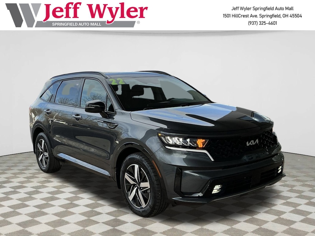Jeff Wyler Springfield Auto Mall is pleased to offer this attractive 2022 Kia Sorento EX in Gravity Gray. Well equipped with: Panoramic Sunroof Package (LED Interior Lighting and Power Sunroof w/Power Sunshade), 3.316 Axle Ratio, 3rd row seats: split-bench, 4-Wheel Disc Brakes, 6 Speakers, ABS brakes, Air Conditioning, Alloy wheels, AM/FM radio: SiriusXM, Apple CarPlay & Android Auto, Auto High-beam Headlights, Automatic temperature control, Brake assist, Bumpers: body-color, Carpeted Floor Mats, Delay-off headlights, Driver door bin, Driver vanity mirror, Dual front impact airbags, Dual front side impact airbags, Electronic Stability Control, Emergency communication system: UVO Link, Exterior Parking Camera Rear, Four wheel independent suspension, Front anti-roll bar, Front Bucket Seats, Front Center Armrest, Front dual zone A/C, Front fog lights, Front reading lights, Fully automatic headlights, Heated door mirrors, Heated Front Bucket Seats, Heated front seats, Illuminated entry, Knee airbag, Leather Shift Knob, Leather steering wheel, Low tire pressure warning, Navigation System, Occupant sensing airbag, Outside temperature display, Overhead airbag, Overhead console, Panic alarm, Passenger door bin, Passenger vanity mirror, Power door mirrors, Power driver seat, Power Liftgate, Power steering, Power windows, Radio data system, Radio: AM/FM Audio System, Rear air conditioning, Rear anti-roll bar, Rear reading lights, Rear window defroster, Rear window wiper, Remote keyless entry, Roof rack: rails only, Security system, Smart Key w/ Push Button and Remote Start, Speed control, Speed-sensing steering, Split folding rear seat, Spoiler, Steering wheel mounted audio controls, SynTex Artificial Leather Seat Trim, Tachometer, Telescoping steering wheel, Tilt steering wheel, Traction control, Trip computer, Turn signal indicator mirrors, Variably intermittent wipers, and Wheels: 7.5J x 18" Machine-Finished Alloy. Ask about available certifications. Used vehicles 10 years of age or newer with less than 100,000 miles are eligible for the Wyler Assurance Program, but eligible vehicles must pass our reconditioning process and multi-point inspection. Provided the vehicle passes inspection, vehicles will be eligible for the 6 month/6,000 mile limited warranty. The 6 month/6,000 mile limited warranty is NOT available on AS-IS vehicles, wholesale vehicles, lease buyback/pass-thru vehicles or un-inspected vehicles. Note that this program can also apply to vehicles where the remaining factory coverage is less than 6 months or 6,000 miles. Please check the Federal Trade Commission (FTC) Buyers guide on the vehicle for full details as to whether or not warranty coverage may apply. Contact Dealer for additional details. The Wyler Assurance 6 month/6,000 Mile limited warranty ends 6 months from the date of the Retail Purchase Agreement (BUYERS ORDER) or when the vehicle's odometer registers 6,000 additional miles to the mileage listed on the BUYERS ORDER, whichever comes first. Your Deductible - The warranty holder on your contract pays the first $100 of each covered repair.