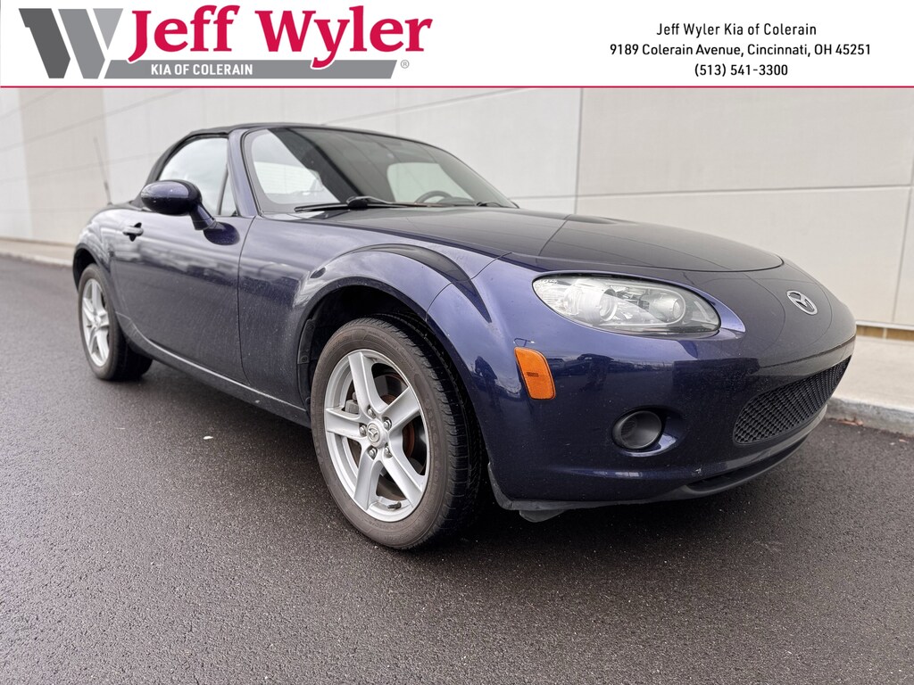 Jeff Wyler Kia of Colerain is excited to offer this great 2007 Mazda Miata Sport in Stormy Blue Mica. 16" Aluminum Alloy Wheels, 4 Speakers, 4-Wheel Disc Brakes, ABS brakes, Air Conditioning, Alloy wheels, AM/FM Stereo w/Single CD Player, Bumpers: body-color, CD player, Cloth Upholstery, Convertible roof wind blocker, Driver vanity mirror, Dual front impact airbags, Dual front side impact airbags, Four wheel independent suspension, Front anti-roll bar, Front Bucket Seats, Glass rear window, Occupant sensing airbag, Passenger cancellable airbag, Passenger vanity mirror, Power door mirrors, Power steering, Power windows, Rear anti-roll bar, Rear window defroster, Reclining Front Bucket Seats, Speed-sensing steering, Sport steering wheel, Tachometer, and Tilt steering wheel Our PRE-OWNED vehicles are put through a rigorous 167- POINT QUALITY ASSURANCE INSPECTION along with an average amount of over $1,400.00 SPENT to recondition each vehicle so we can be sure to deliver you the highest quality vehicle like you deserve! ***ONLINE PRICE DOES NOT INCLUDE WYLER FAMILY FIRST PACKAGE***