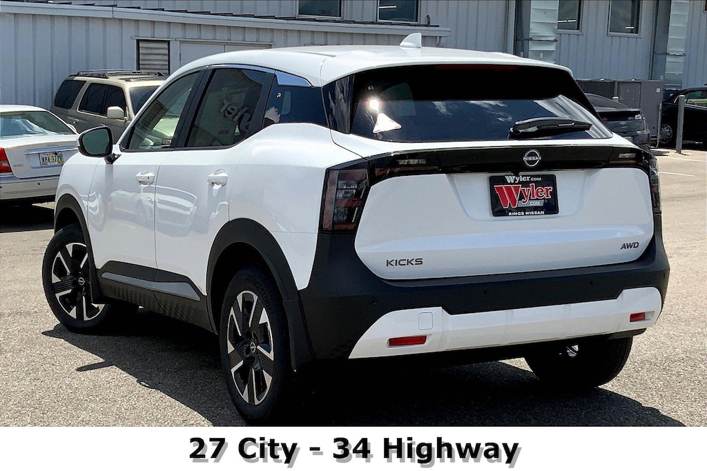 Jeff Wyler Kings Nissan is excited to offer this outstanding 2025 Nissan Kicks SV in Fresh Powder. Well equipped with: 17" Alloy Wheels, 4 Speakers, 4-Wheel Disc Brakes, ABS brakes, Air Conditioning, Alloy wheels, AM/FM radio: Sirius, Auto High-beam Headlights, Blind Spot Warning, Brake assist, Bumpers: body-color, Cloth Seat Trim, Driver door bin, Driver vanity mirror, Dual front impact airbags, Dual front side impact airbags, Electronic Stability Control, Four wheel independent suspension, Front anti-roll bar, Front Bucket Seats, Front Center Armrest, Front reading lights, Fully automatic headlights, Heated door mirrors, Illuminated entry, Knee airbag, Low tire pressure warning, Occupant sensing airbag, Outside temperature display, Overhead airbag, Panic alarm, Passenger door bin, Passenger vanity mirror, Power door mirrors, Power steering, Power windows, Radio data system, Radio: AM/FM Audio System, Rear anti-roll bar, Rear Parking Sensors, Rear reading lights, Rear side impact airbag, Rear window defroster, Rear window wiper, Remote keyless entry, Security system, Speed control, Speed-sensing steering, Split folding rear seat, Spoiler, Sport steering wheel, Steering wheel mounted audio controls, Tachometer, Telescoping steering wheel, Tilt steering wheel, Traction control, Trip computer, Variably intermittent wipers, and Wireless Apple CarPlay/Wireless Android Auto.Ask about available certifications.