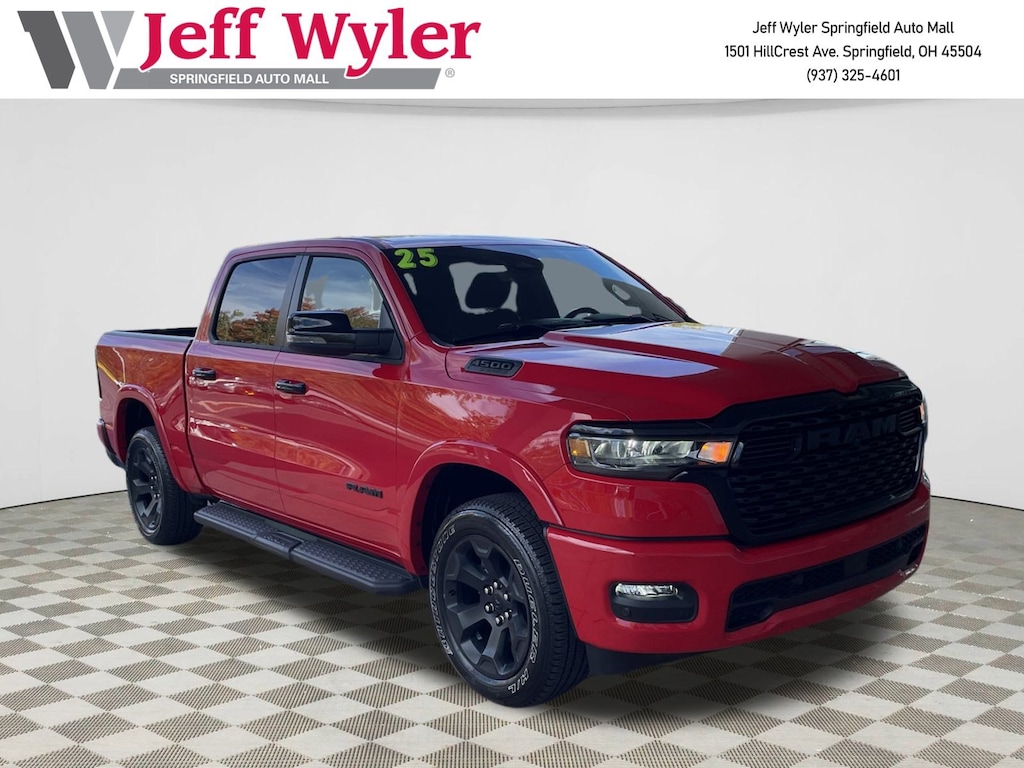 Jeff Wyler Springfield Auto Mall is honored to offer this good-looking 2025 Ram 1500 Big Horn/Lone Star in Flame Red Clearcoat. Well equipped with: Bed Utility Group (Exterior 115V AC Outlet, MOPAR 4 Adjustable Cargo Tie-Down Hooks, MOPAR Spray In Bedliner, and Pick-Up Box Lighting), Big Horn Level 2 Equipment Group (115V Auxiliary Power Outlet, 115V Auxiliary Rear Power Outlet, 12" Touchscreen Display, 2nd Row In Floor Storage Bins, 400W Inverter, 4G LTE Wi-Fi Hot Spot, 9 Amplified Speakers w/Subwoofer, Air Conditioning ATC w/Dual Zone Control, Apple CarPlay, Auto Power-Folding Mirrors, Auto-Dimming Exterior Driver Mirror, Auto-Dimming Rear-View Mirror, Black Exterior Mirrors, Black Premium Power Mirrors, Cluster 7.0" TFT Color Display, Configurable Drive Mode, Connected Travel & Traffic Services, Connectivity - US/Canada, Convex Wide-Angle Exterior Mirror Insert, Exterior Mirrors Courtesy Lamps, Exterior Mirrors w/Heating Element, Exterior Mirrors w/Supplemental Signals, Glove Box Lamp, Google Android Auto, GPS Antenna Input, GPS Navigation, HD Radio, Heated Front Seats, Heated Steering Wheel, Integrated Voice Command w/Bluetooth, Leather Wrapped Steering Wheel, LED Dome Lamp w/On/Off Switch, LED Footwell Lighting, Media Hub w/2 Charge Only USBs, Overhead LED Lamps, Power 2-Way Driver Lumbar Adjust, Power Adjust 8-Way Driver Seat, Power Adjustable Pedals, Premium Overhead Console, Radio: Uconnect 5 Nav w/12.0" Display, Rear Power Sliding Window, Rear Window Defroster, Remote Tailgate Release, Security Alarm, SiriusXM w/360L, Steering Wheel Mounted Audio Controls, Sun Visors w/Illuminated Vanity Mirrors, Universal Garage Door Opener, and USB Host Flip), Night Edition (3 Rear Seat Head Restraints, 4 Way Front Headrests, Accent Color Door Handles, Accent Color Premium Power Mirrors, Accent Color Tailgate Handle, Anti-Spin Differential Rear Axle, Black Exterior Truck Badging, Black Headlamp Bezels, Black Interior Accents, Black Painted Exterior Mirrors Caps, Black Tail Lamp Bezels, Body Color Front Bumper, Body Color Rear Bumper w/Step Pads, Bucket Seats, Deluxe Cloth Bucket Seats, Front Seat Back Map Pockets, Full Length Floor Console, Grille Black Surround Black Mesh, Manual Adjust 4-Way Front Passenger Seat, RAM Grille Badge - Black, Rear 60/40 Folding Seat, Rear Center Armrest, and Wheels: 20" x 9.0" Aluminum Painted Clad), Quick Order Package 21Z Big Horn, 4-Wheel Disc Brakes, 6 Speakers, ABS brakes, Air Conditioning, Alloy wheels, AM/FM radio, Apple CarPlay/Android Auto, Auto High-beam Headlights, Brake assist, Bumpers: chrome, Cloth Bench Seat, Cluster 12" TFT Color Display, Compass, Delay-off headlights, Driver door bin, Dual front impact airbags, Dual front side impact airbags, Electronic Stability Control, Front anti-roll bar, Front Center Armrest w/Storage, Front fog lights, Front License Plate Bracket, Front reading lights, Front wheel independent suspension, Fully automatic headlights, Heated door mirrors, Illuminated entry, Low tire pressure warning, Manual Folding Exterior Mirrors, Mopar Black Tubular Side Steps, MOPAR Front & Rear Rubber Floor Mats, Occupant sensing airbag, Outside temperature display, Overhead airbag, Overhead console, Panic alarm, ParkView Rear Back-Up Camera, Passenger door bin, Passenger vanity mirror, Power door mirrors, Power steering, Power windows, Radio data system, Radio: Uconnect 5 W w/8.4" Display, RAM Grille Badge - Chrome, Rear anti-roll bar, Rear seat center armrest, Rear step bumper, Rear Underseat Compartment Storage, Remote keyless entry, Speed control, Split folding rear seat, Supplier Part Tracking (J-1), Tachometer, Telescoping steering wheel, Tilt steering wheel, Traction control, Trip computer, Variably intermittent wipers, Voltmeter, and Wheels: 18" x 8" Cast-Aluminum Painted. Ask about available certifications. Used vehicles 10 years of age or newer with less than 100,000 miles are eligible for the Wyler Assurance Program, but eligible vehicles must pass our reconditionin