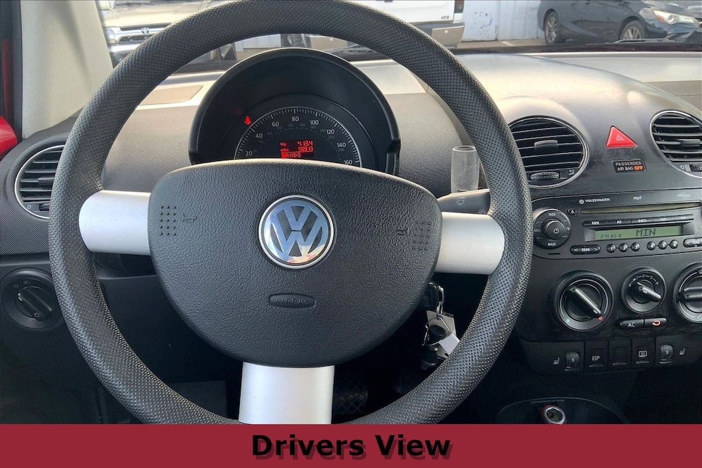 Jeff Wyler Kings Nissan is proud to offer this superb 2006 Volkswagen Beetle 2.5L in . Well equipped with: 10 Speakers, 4-Wheel Disc Brakes, 6.5J x 16" Alloy Wheels, ABS brakes, Air Conditioning, Alloy wheels, AM/FM radio, Anti-whiplash front head restraints, Brake assist, Bumpers: body-color, CD player, Convertible roof lining, Driver door bin, Driver vanity mirror, Dual front impact airbags, Dual front side impact airbags, Electronic Stability Control, Front anti-roll bar, Front Bucket Seats, Front Center Armrest, Front reading lights, Front wheel independent suspension, Fully Reclining Front Comfort Seats, Glass rear window, Heated door mirrors, Illuminated entry, Integrated roll-over protection, Leatherette Seat Trim, Occupant sensing airbag, Outside temperature display, Overhead console, Panic alarm, Passenger door bin, Passenger vanity mirror, Power door mirrors, Power steering, Power windows, Rear anti-roll bar, Rear seat center armrest, Rear window defroster, Remote keyless entry, Security system, Speed control, Speed-Sensitive Wipers, Tachometer, Telescoping steering wheel, Tilt steering wheel, Traction control, Turn signal indicator mirrors, and Variably intermittent wipers.Ask about available certifications.